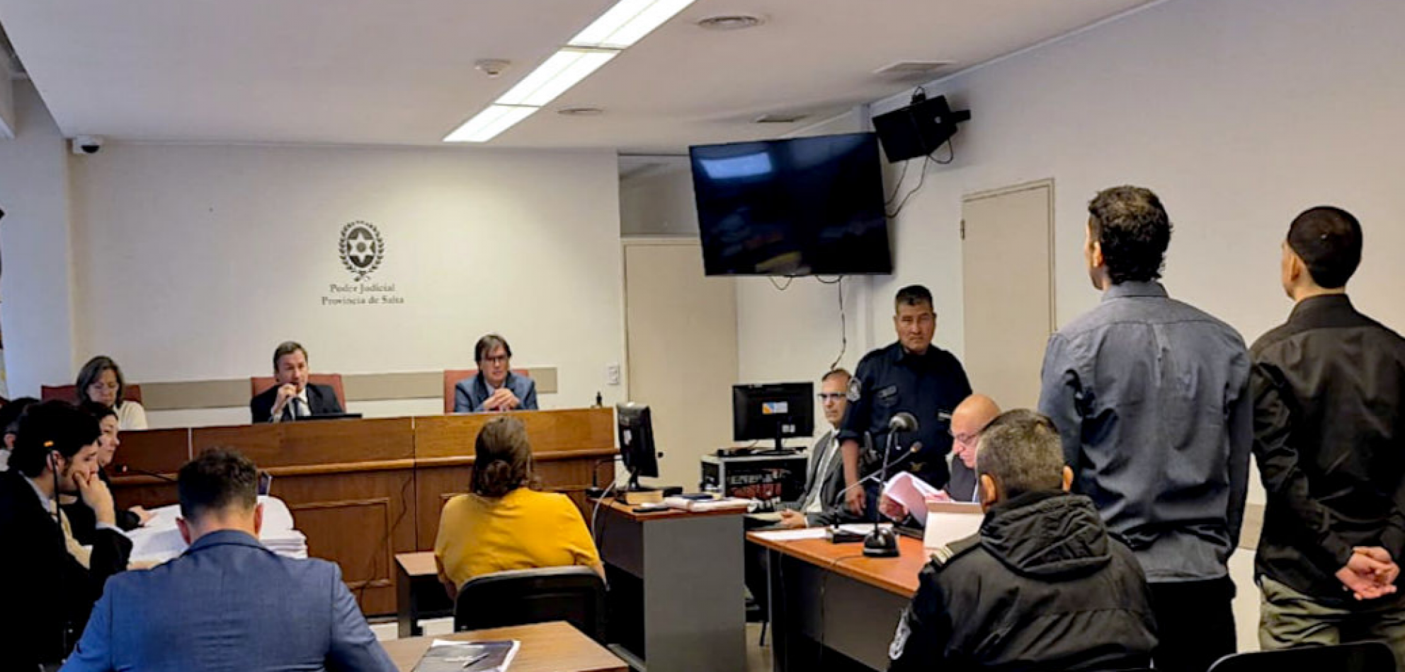El tribunal está integrado por los jueces José Luis Riera (presidente), Mónica Faber y Maximiliano Troyano (vocales). Por el Ministerio Público interviene una unidad fiscal conformada por Mónica Poma, Gabriel González y Leandro Flores. La defensa de los dos imputados está a cargo de Marcelo Arancibia y la querella estará representada por Pedro Arancibia.