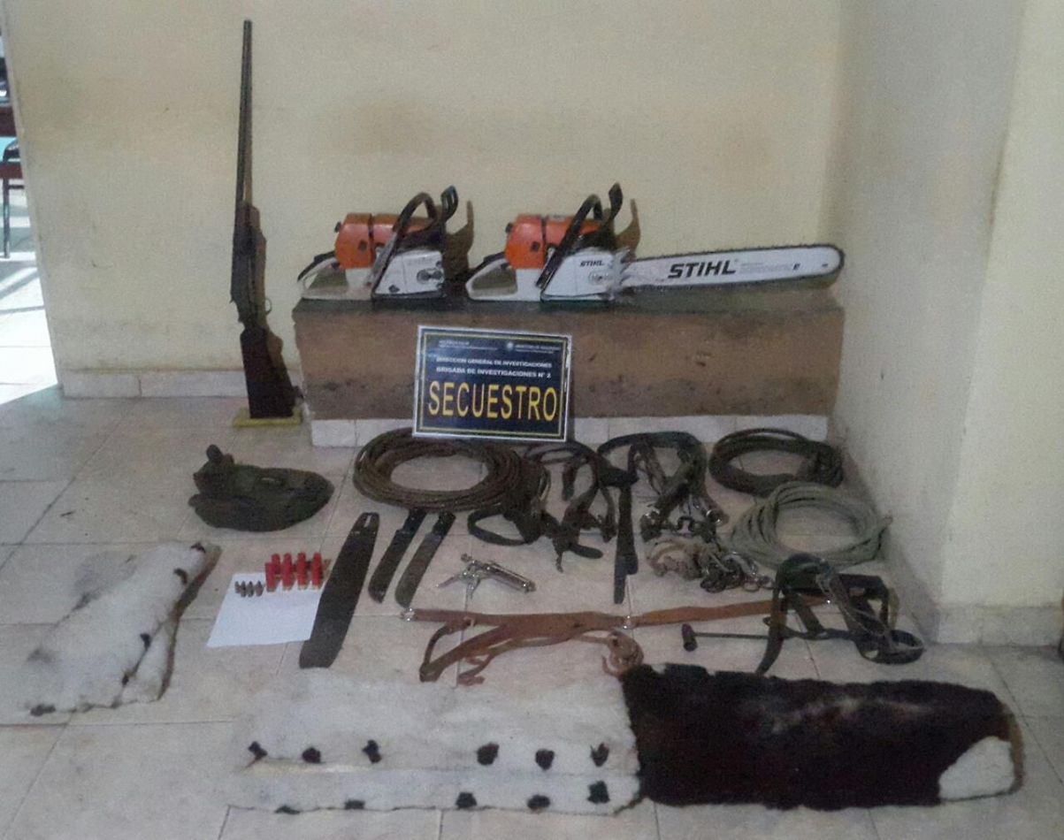 Efectivos que conforman la Brigada de Investigaciones de Oran, concluyeron el trabajo de averiguaciones por el robo de motosierras, armas de fuego y elementos para montura denunciado por el propietario de una finca en el paraje Casa de Tabla.