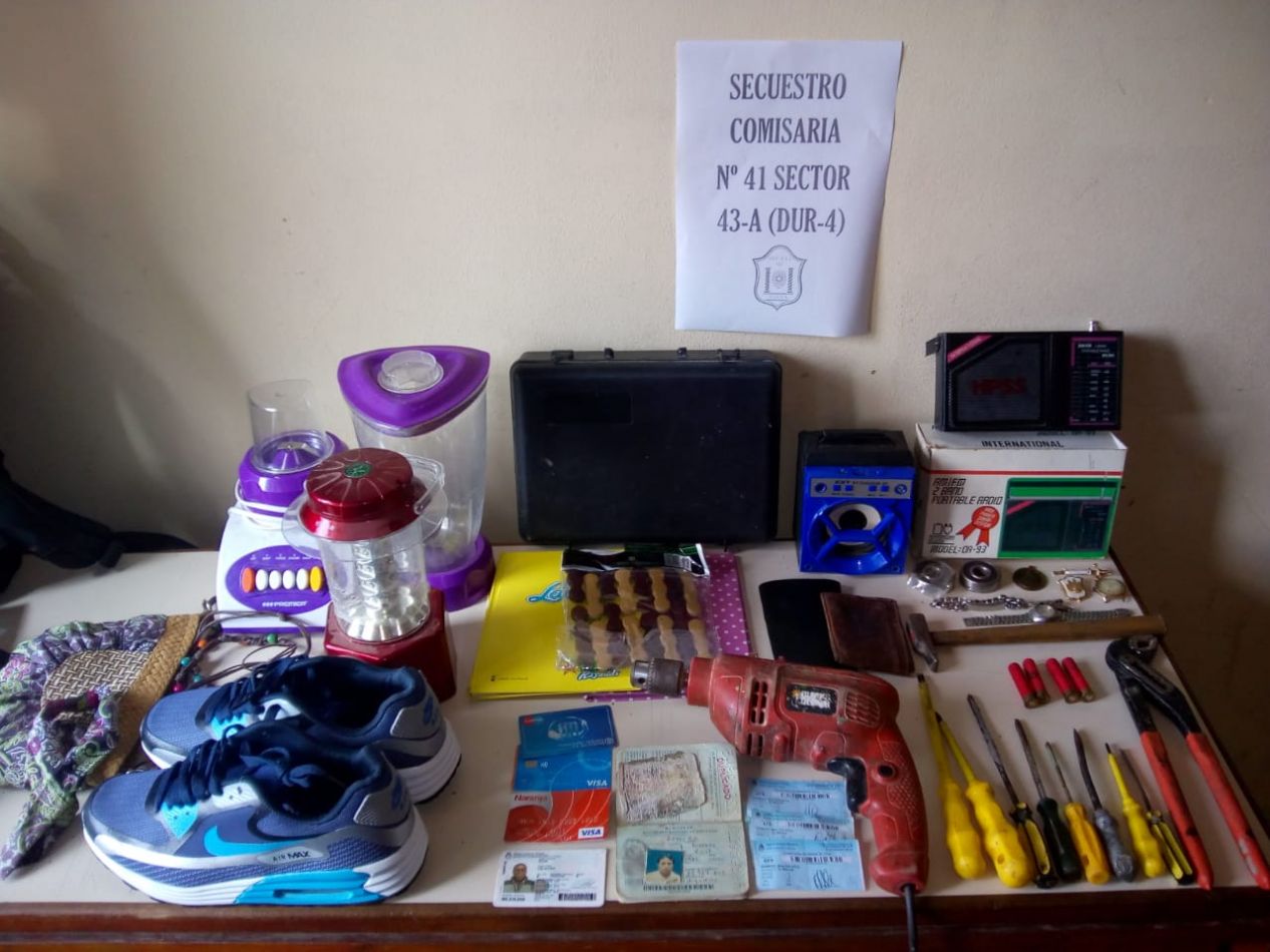 En la tarde de ayer se concretó la demora de la sospechosa y con la autorización de la madre se ingresó al domicilio ubicado en barrio La Merced, donde se secuestró un maletín de plástico con 5 mil pesos, un par de zapatillas, una licuadora, un ventilador de pie, documentación personal de los denunciantes, un taladro, entre otros elementos recuperados.