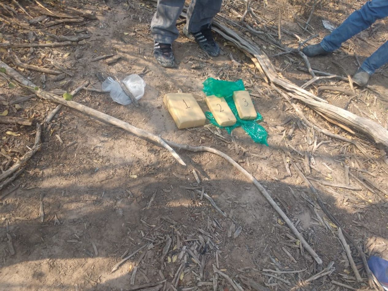 Al realizar un recorrido por la zona incautaron droga que se encontraba dispuestas en bultos, y se dio intervención a la División Investigaciones Complejas contra la Narcocriminalidad de Salvador Mazza, quienes tras prueba reactiva determinaron que se trata de marihuana cuyo peso equivale a 8.260 dosis.