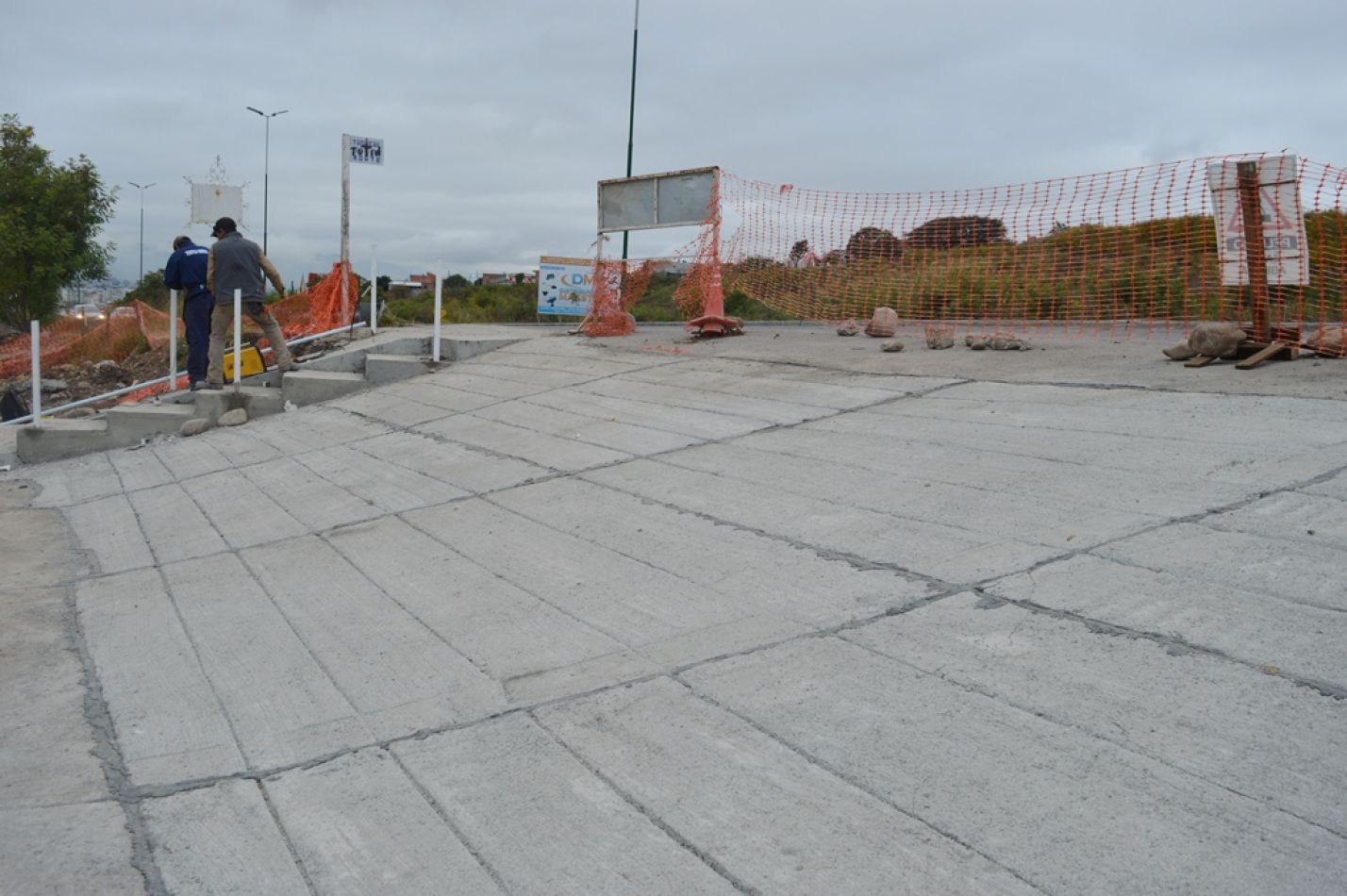 Las cuadrillas están terminando en sectores de paso de peatones con la construcción de escaleras, colocación de barandas y detalles menores. Además se avanza con el fraguado de la platea de hormigón, que permite el drenaje del agua.