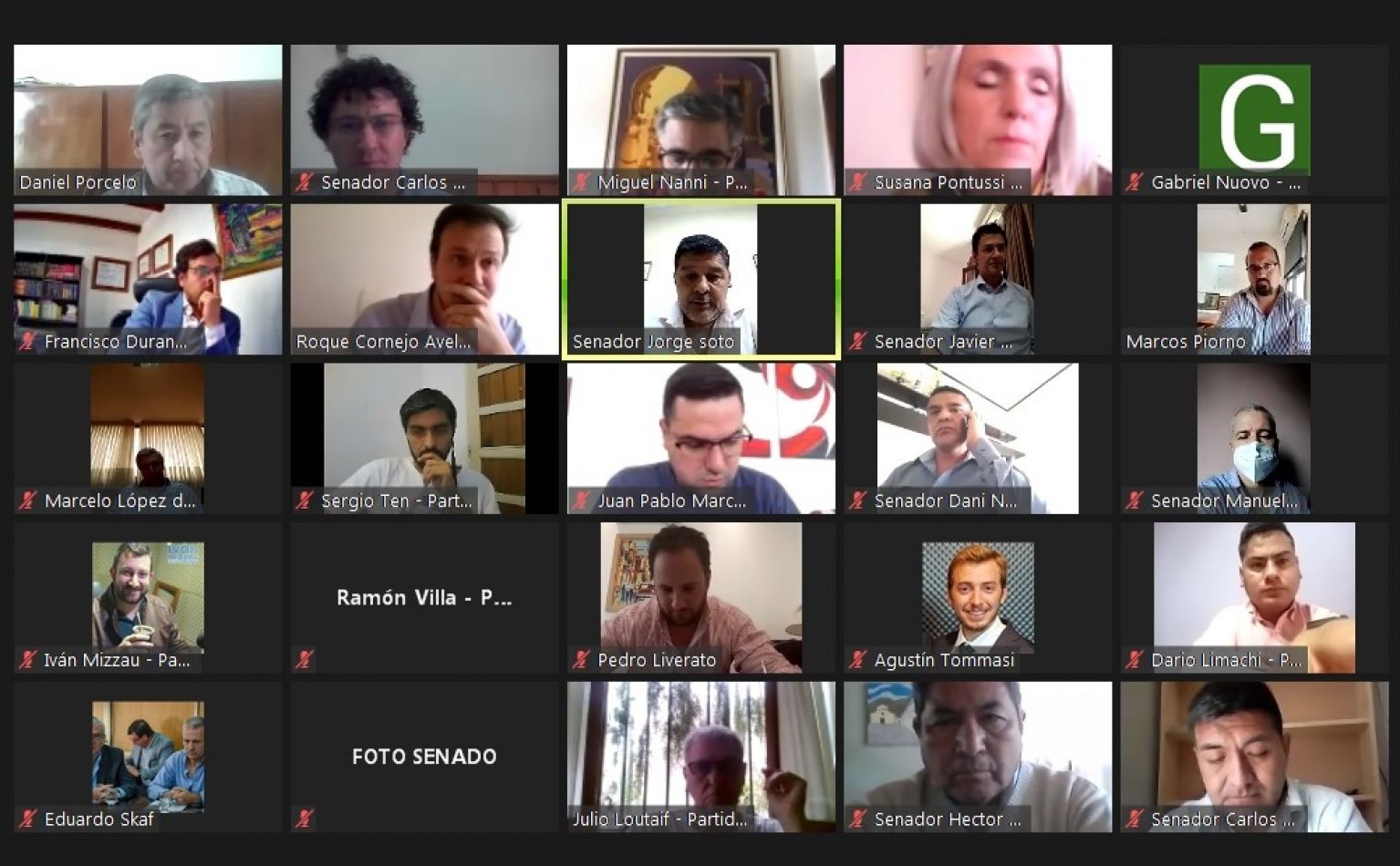 El encuentro online contó con la participación de los senadores Dani Nolasco, Jorge Soto, Mashur Lapad, Silvina Abilés, Manuel Pailler, Javier Mónico, Carlos Rosso, Guillermo Durand Cornejo, Carlos Ampuero y Héctor Nolasco.