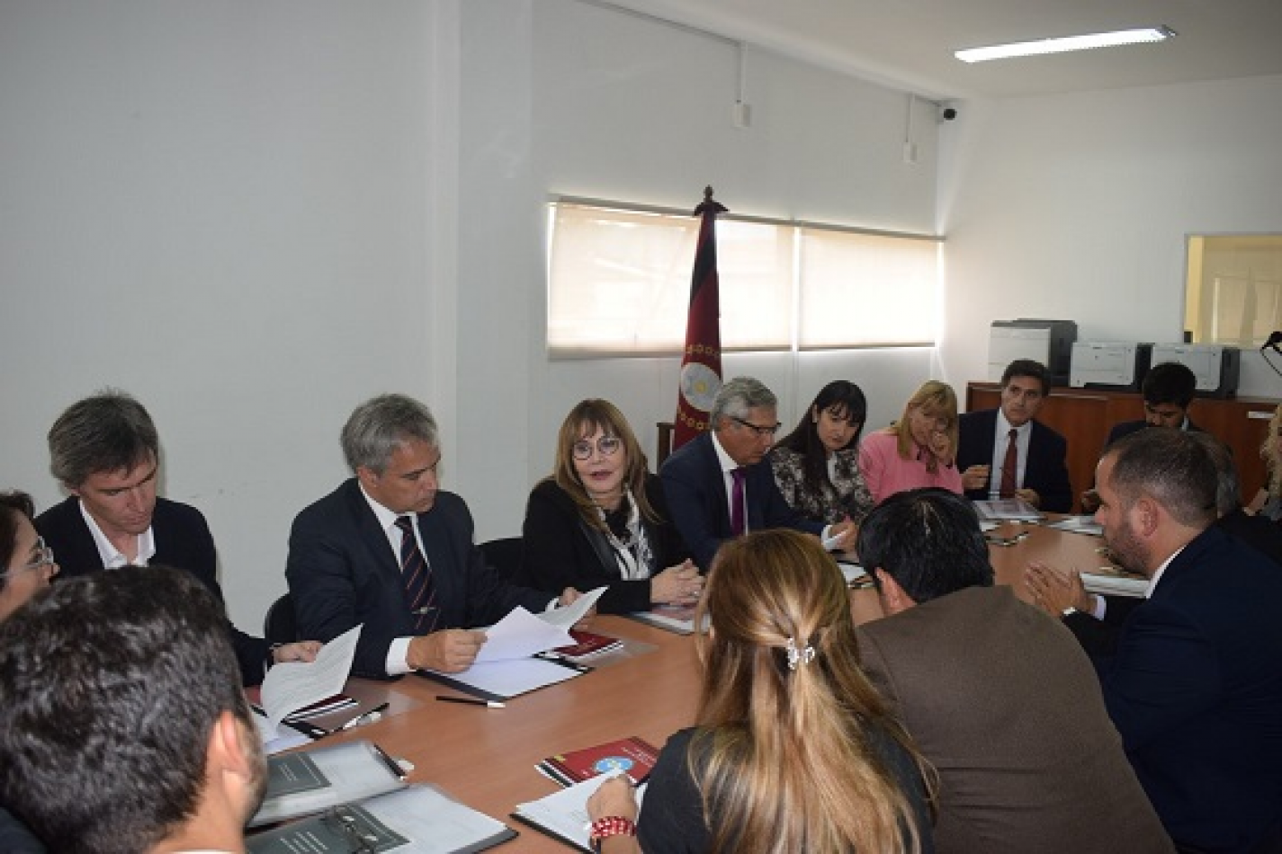 La jueza de Corte y presidenta del cuerpo, Sandra Bonari, encabezó el encuentro del que participaron el juez de Corte Fabián Vittar; el vicepresidente Lucas Godoy; los jueces Guillermo Adriano Polliotto y Gonzalo Mariño; la defensora oficial Rosanna Sángari; la asesora de incapaces Nora Quinteros; los representantes del estamento de abogados César Martínez Urquiza, María Emilia Carabajal, Graciela Abutt Carol, María Trinidad Arias Villegas, Sergio Díaz Lenes y Marcelo Escudero; por la Cámara de Diputados asistieron Emilia Figueroa, Isabel De Vita y Guillermo Ramos.