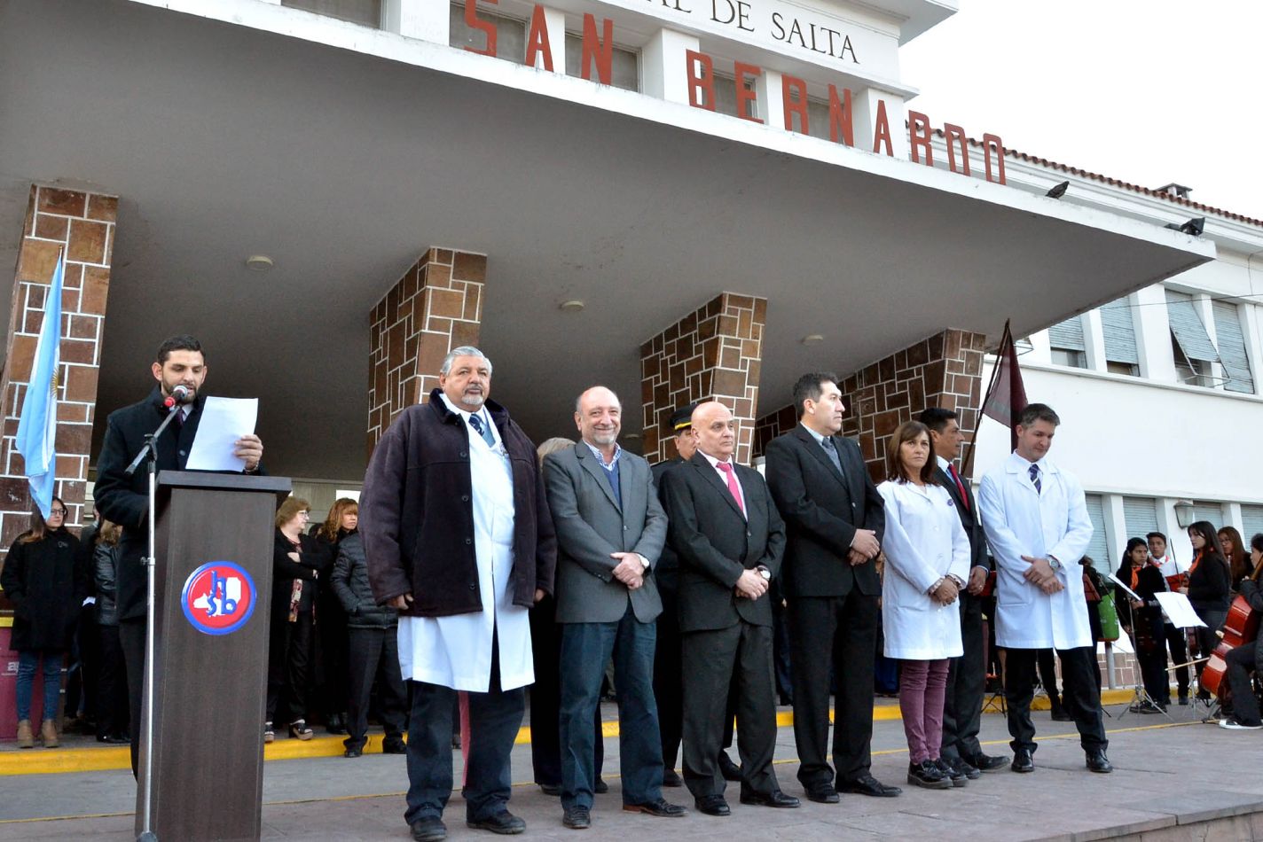 El ministro de Salud Pública, Roque Mascarello participó del acto central en conmemoración al 58º aniversario del Hospital San Bernardo de la capital salteña, junto al gerente general del hospital, Ramón Albeza y al personal de trabajo del nosocomio.