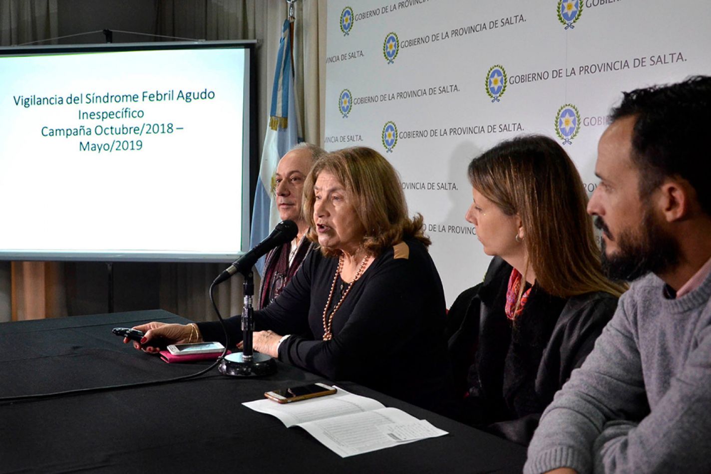 La coordinadora de Epidemiología del Ministerio de Salud Púbica, Griselda Rangeón, junto a su equipo, presentó los resultados de la vigilancia del síndrome febril agudo (SFA) que comenzó en octubre del año pasado. Se dieron a conocer los casos notificados de dengue, las zonas donde se presentaron, el trabajo desarrollado entre Provincia, Nación y los municipios, entre otros temas vinculados.