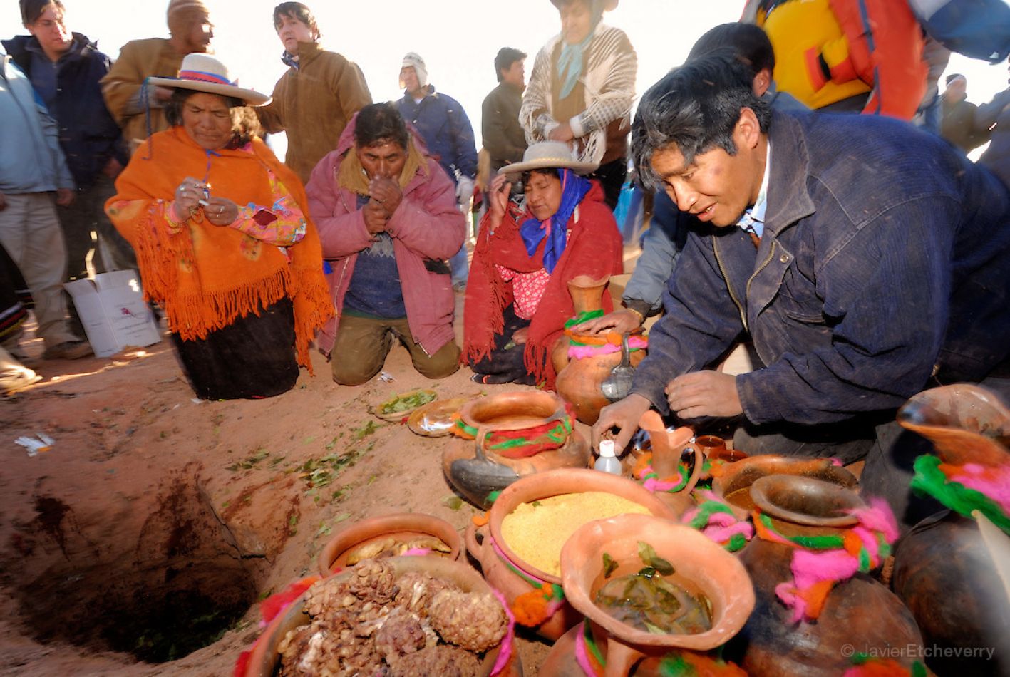 La ceremonia de ofrenda a la Pachamama tuvo lugar en la base del Cerro Sagrado de la Pachamama.