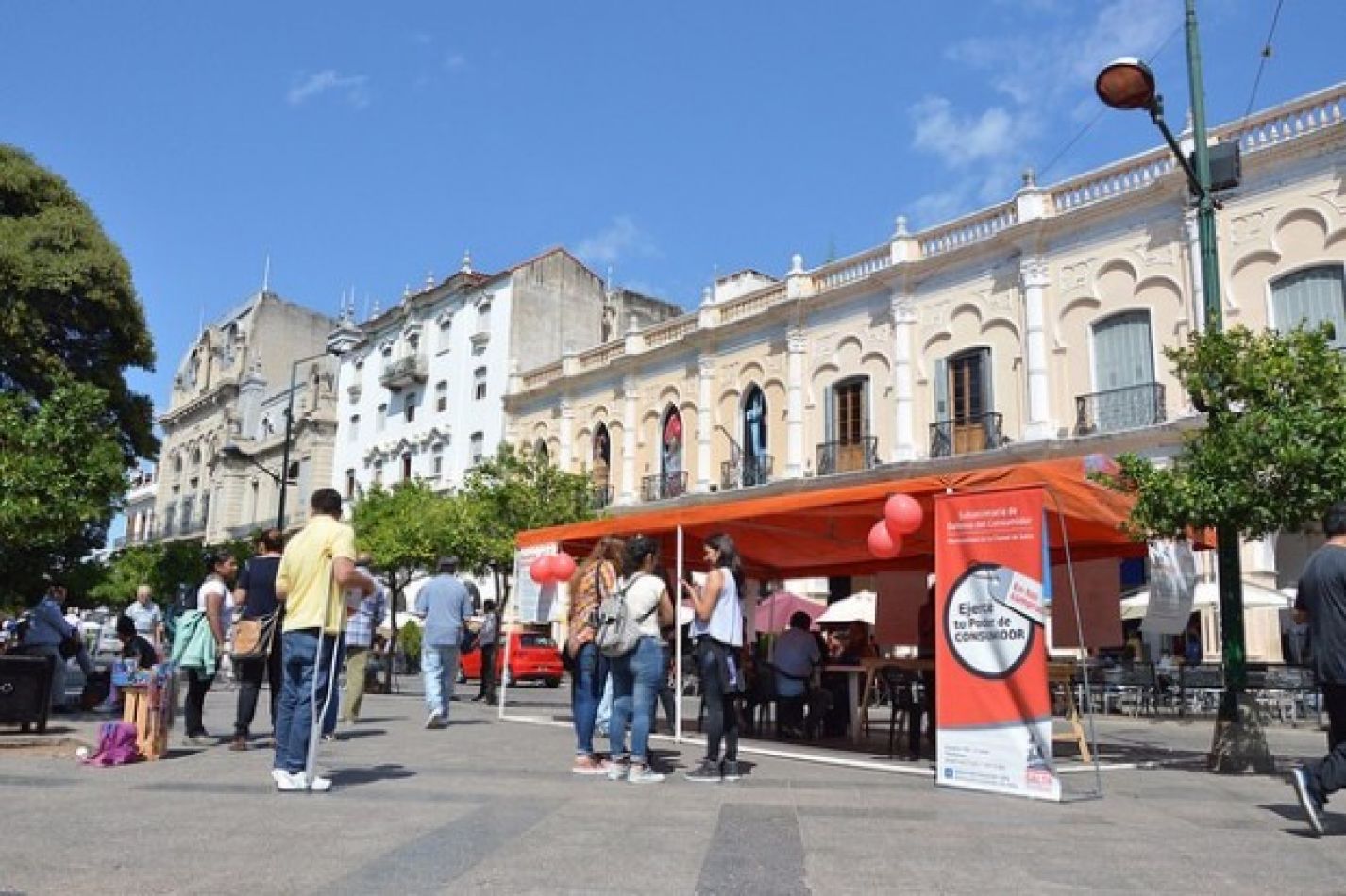 El objetivo es acompañar en un espacio clave del centro de la ciudad, donde además se encuentran bancos, financieras, empresas de tarjetas de crédito, de telefonía celular, entre otros rubros, para concientizar e informar sobre los derechos y la importancia de hacer un consumo responsable en relación al medio ambiente.