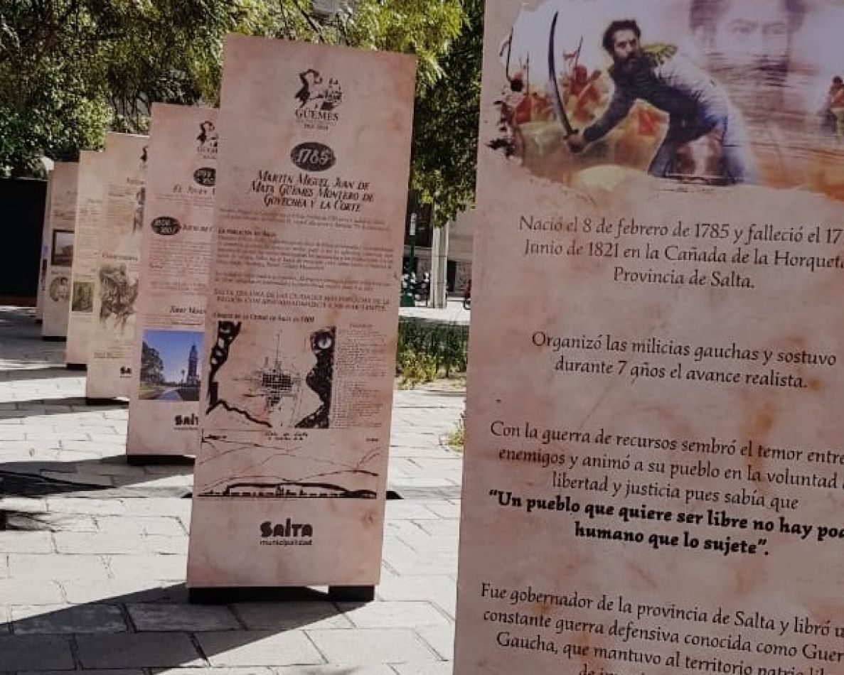 La muestra itinerante “Güemes en la ciudad” se realiza a través de tótems instalados en espacios públicos de la capital salteña, facilitando la difusión de la gesta güemesiana en la ciudadanía, con contenido simple, atractivo y de interés para públicos diversos.