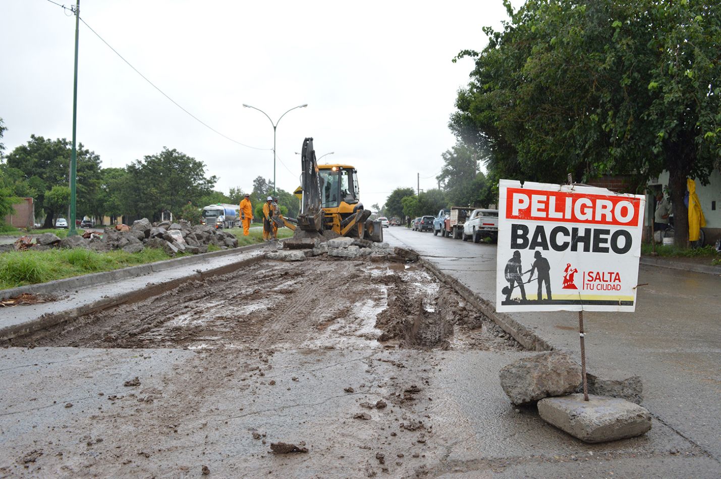 Con maquinaria pesada, las cuadrillas intervinieron en la avenida Venezuela con demolición y retiro de escombros en un perímetro de cuarenta metros, donde se constataron daños en diferentes paneles de hormigón.