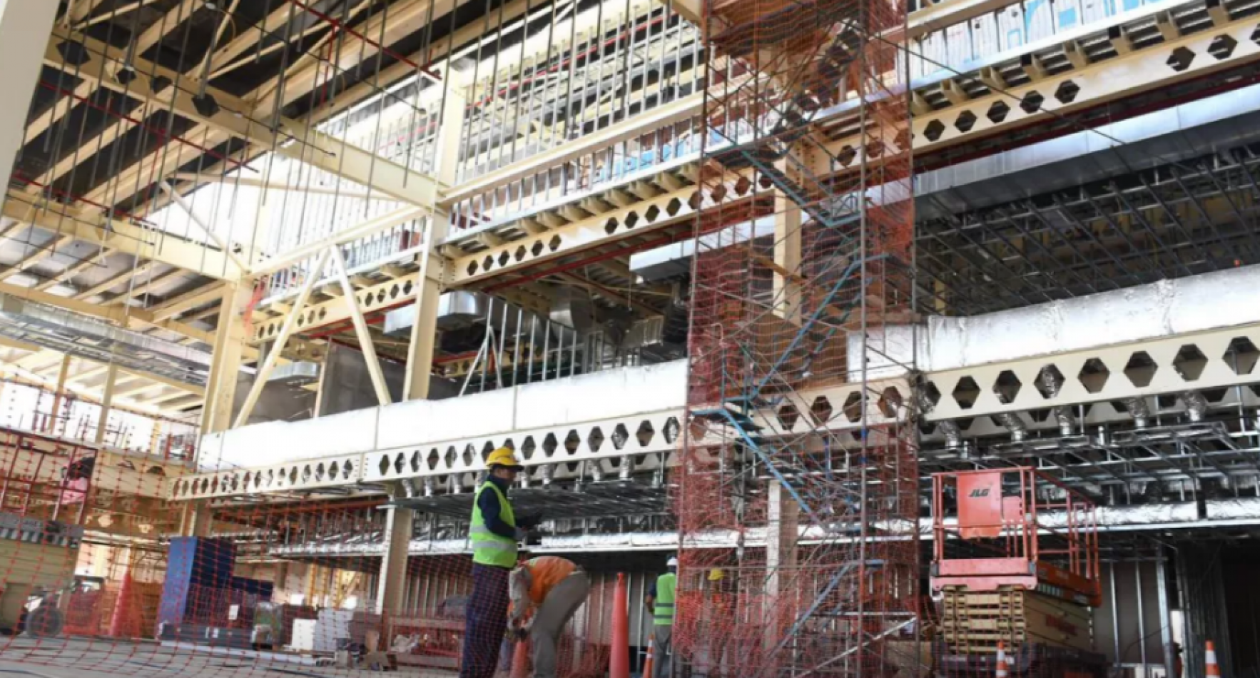 El recorrido incluyó el avance de sectores clave como el nuevo hall principal de check-in, la sala de embarque doméstico ubicada en el primer piso y las áreas técnicas vinculadas a la operación aeroportuaria. Se completó la demolición de los sectores entre los ejes 7 y 13, abarcando 3.900 m², y ya se encuentran finalizadas las fundaciones del núcleo central, con un avance del 70% de la estructura metálica, mientras continúa la demolición del área comprendida entre los ejes 1 y 7.