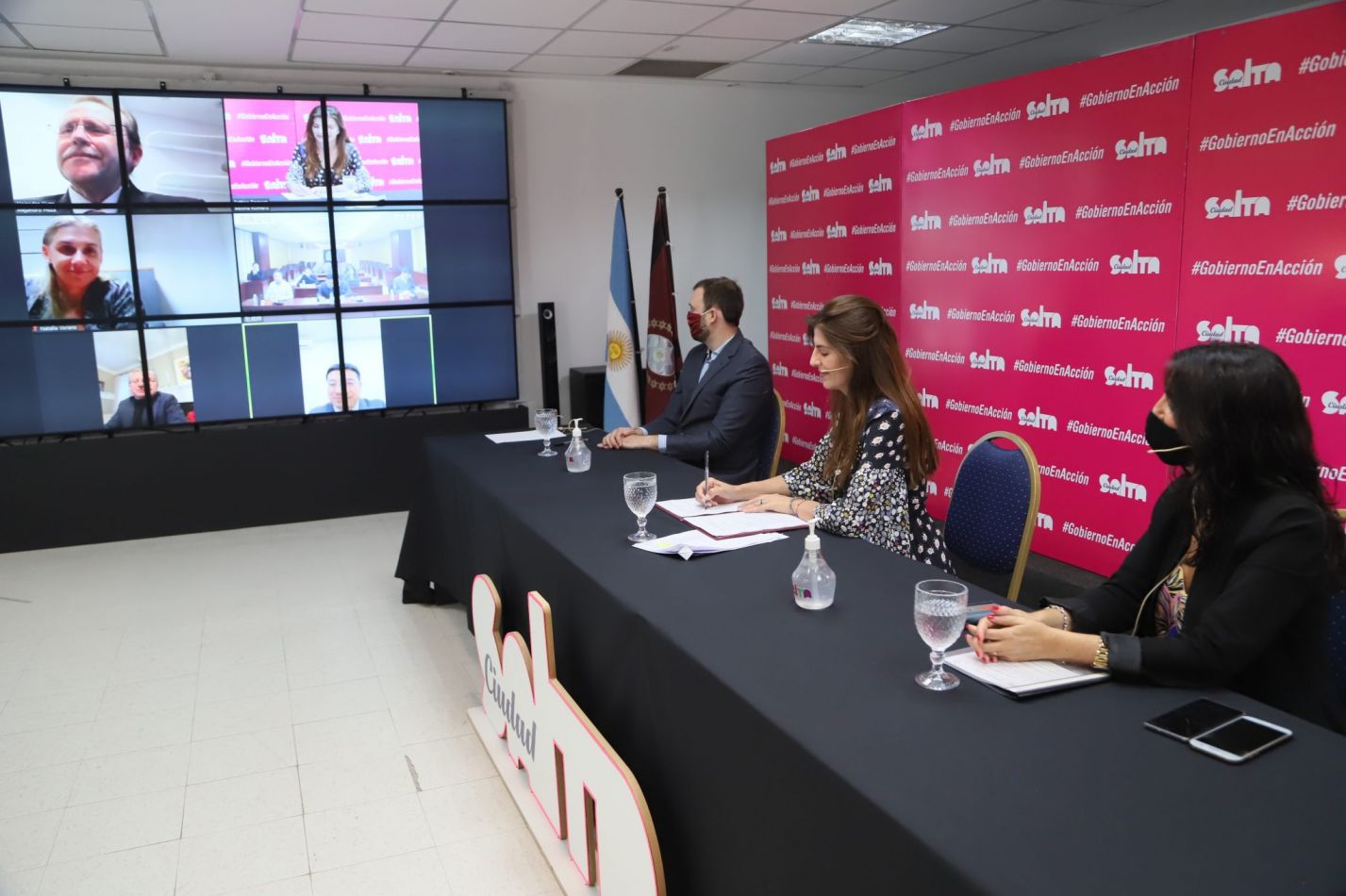 Participaron del encuentro junto a la intendenta Bettina Romero: los miembros de Construcción y Desarrollo en el Extranjero, Dong Guangxian, Mark Cheung, Wang Huabin, Keith Wong, Alejandro D. Fiuza, Rafael Abarca; la traductora de Español de CRCC14, Ni Hui, y el asesor Legal, Guillermo López Mirau.