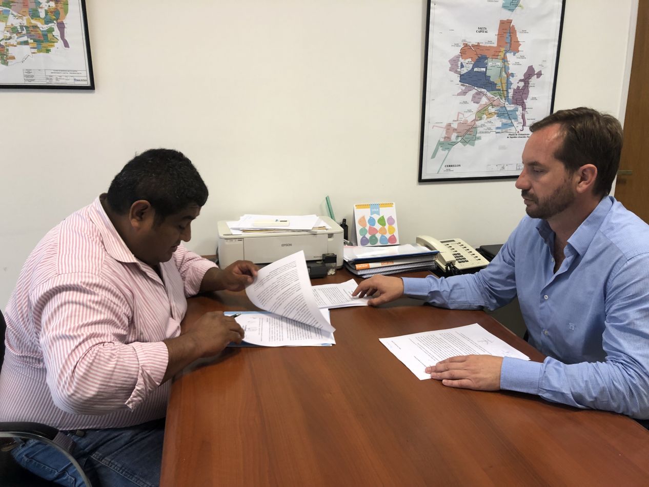 El Presidente de Aguas del Norte, Lucio Paz Posse firmó un convenio de colaboración con el Intendente Mario Aramayo a fin de ejecutar en conjunto la obra para proveer de agua potable a las familias del loteo social Tierra y Hábitat de La Viña.