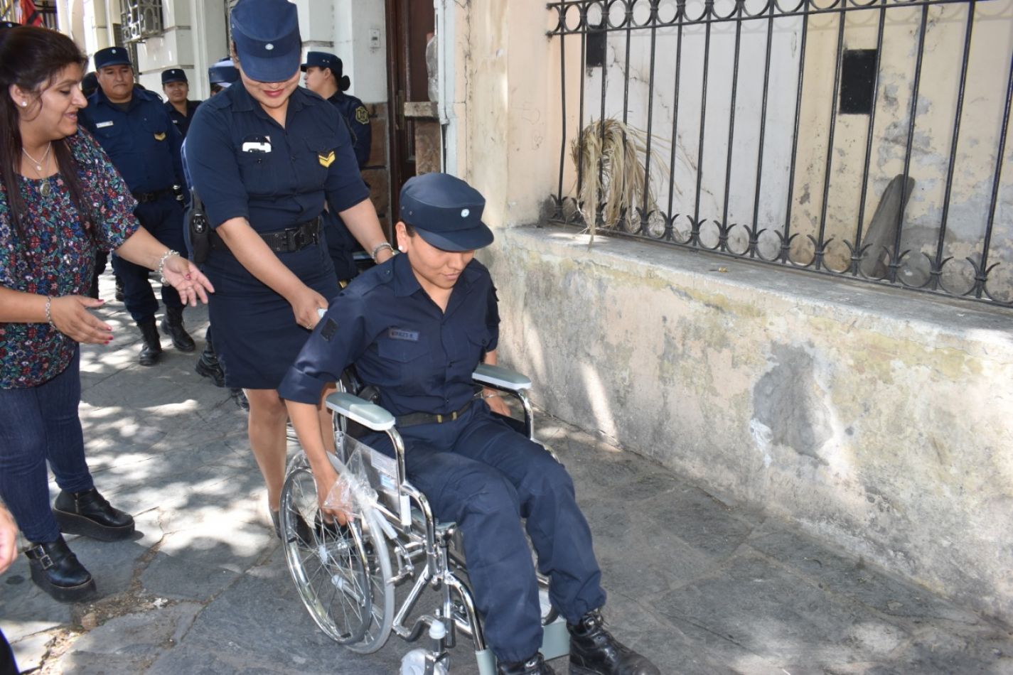 También se hicieron prácticas relacionadas a las limitaciones físicas o psíquicas que pueden presentar ciudadanos a los que se debe asistir con especial atención durante procedimientos de seguridad.