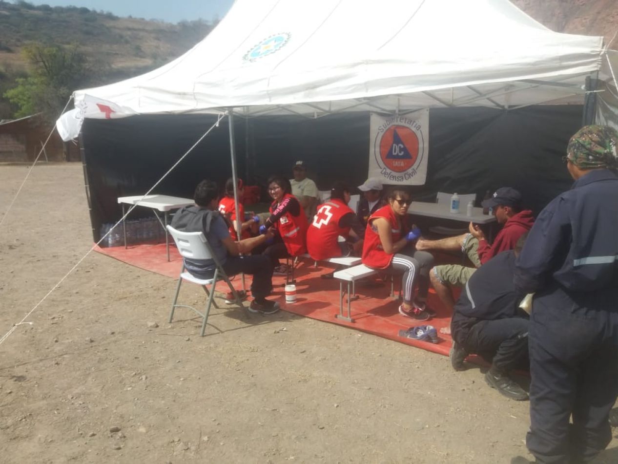 En Santa Rosa de Tastil, brindarán asistencia los bomberos voluntarios de San Antonio de los Cobres, Cruz Roja, Defensa Civil y el colegio de Masajistas de Salta hasta este miércoles.
