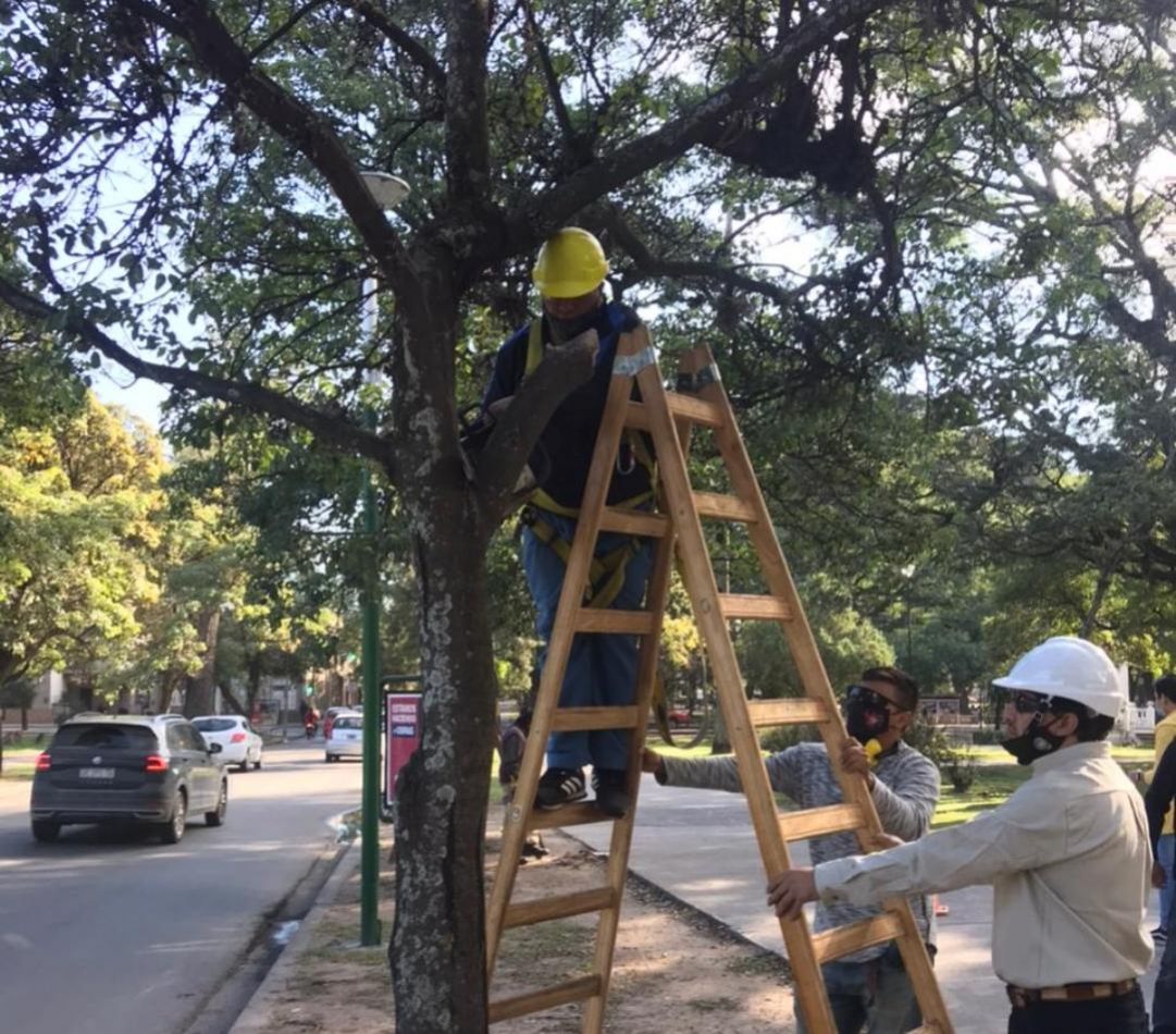 Las intervenciones consistieron en poda de despeje, de seguridad y de levante de copa en árboles del parque San Martín y calles aledañas que precisaban mantenimiento.