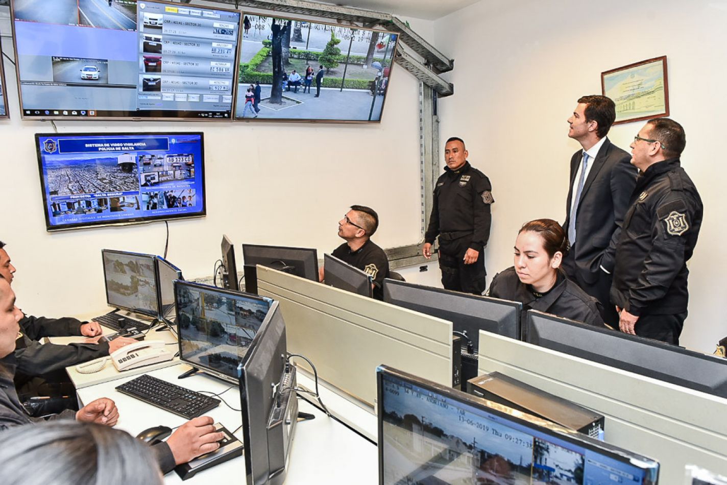 Acompañado por el vicegobernador Miguel Ángel Isa, los diputados nacionales Andrés Zottos y Pablo Kosiner, y el ministro de Seguridad de la provincia, Carlos Oliver; recorrió las instalaciones del Centro de Monitoreo y verificó las distintas posibilidades de reconocimiento que ofrece el nuevo sistema.