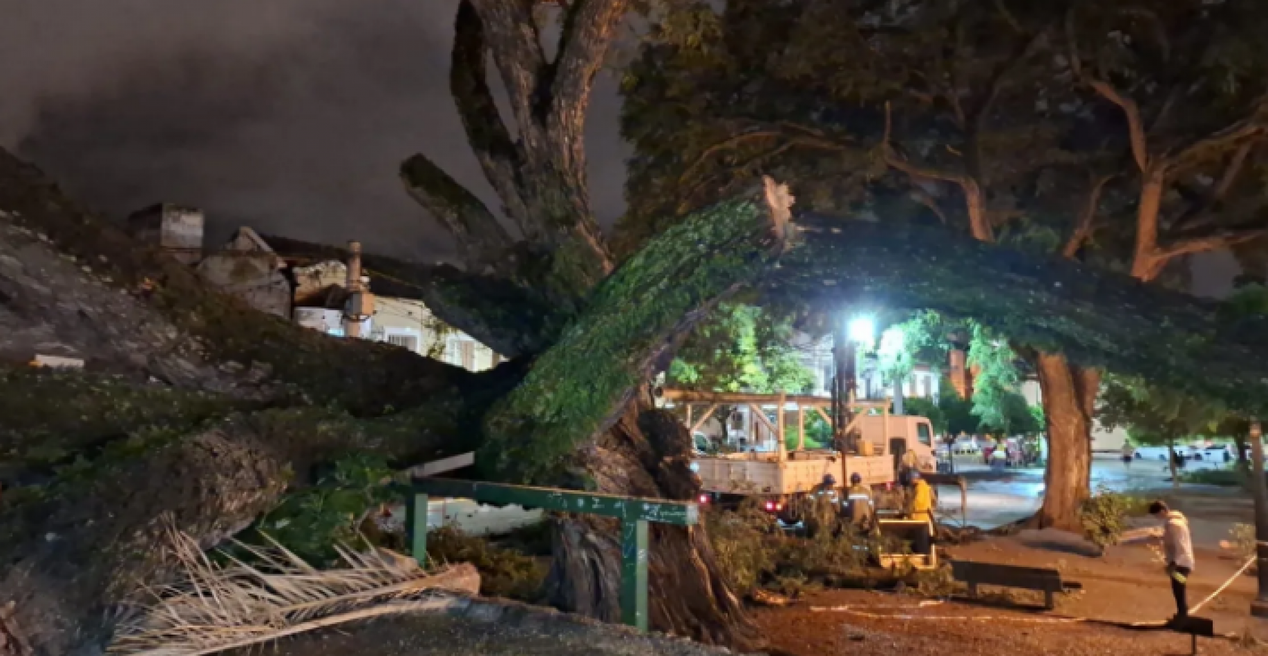 “El árbol es una tipa de gran tamaño y ya no puede sostenerse, por eso lo vamos a sacar completamente. Vamos a trabajar de esta manera para dejar la plaza como estaba, en buen estado y segura”, dijo Martín Miranda, secretario de Ambiente y Servicios Públicos, área que también trabaja en el operativo.