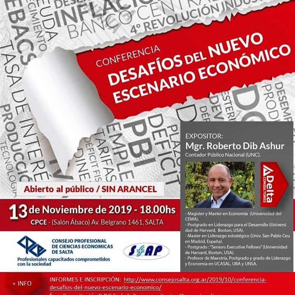El expositor, Roberto Dib Ashur es magister y master en economía, realizó un post grado en liderazgo para el desarrollo, master en liderazgo estratégico y profesor de maestría en universidades como CEMA, Harvard, Madrid, UBA, UNSa y UCASAL.