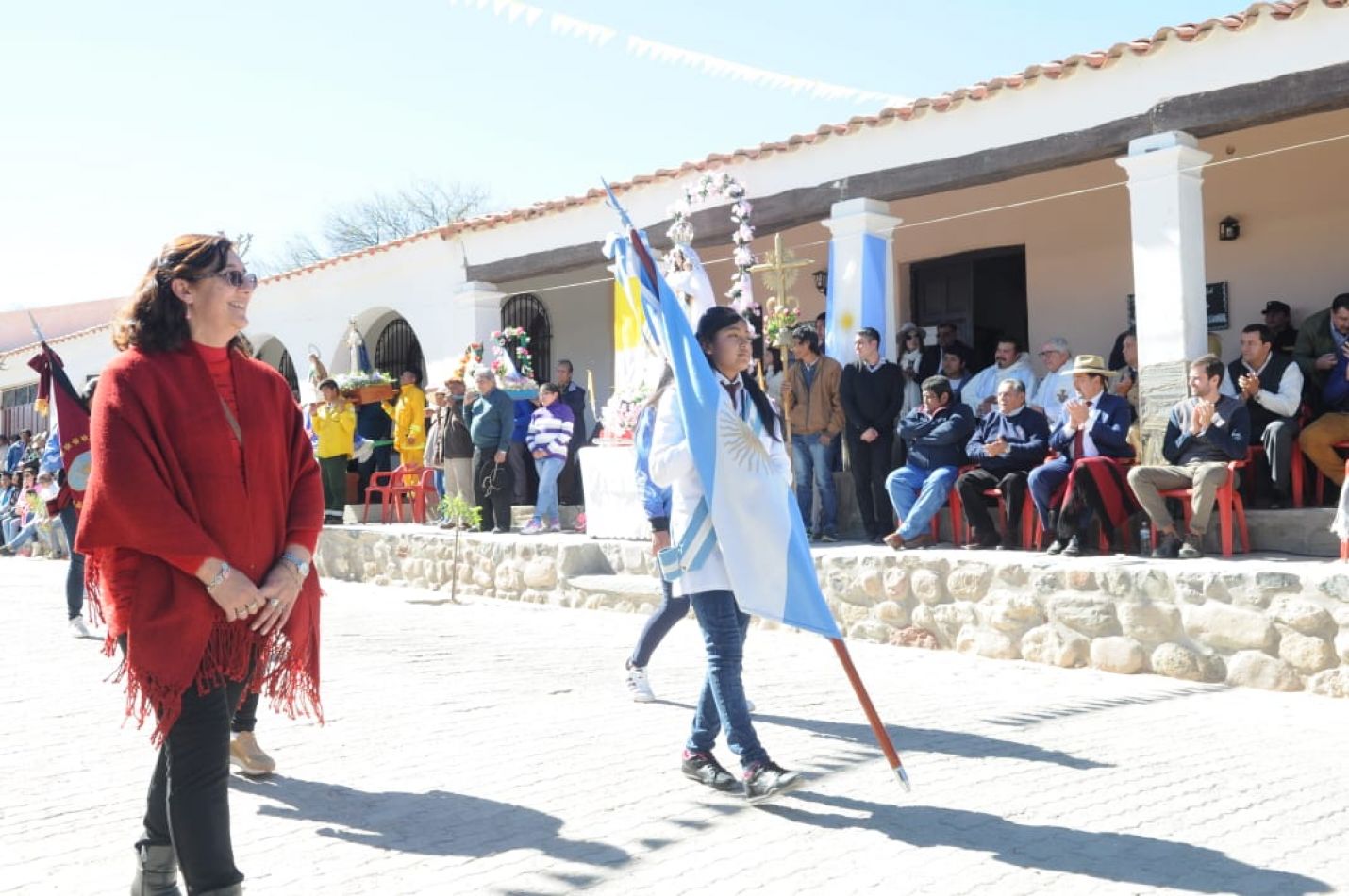 La actividad oficial en la localidad perteneciente al Departamento Molinos comenzó el sábado pasadas las 10 de la mañana, cuando las autoridades y vecinos se congregaron en la plaza principal para dar curso al izamiento de las banderas nacional y provincial, que estuvo a cargo del Vicegobernador Isa y el intendente Mauricio Abán.