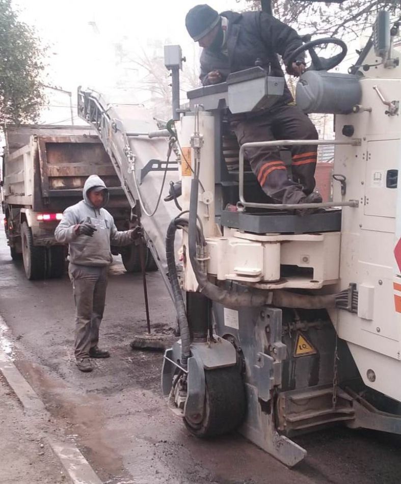 Con cuadrillas de la Planta Asfáltica se ejecutaron tareas de fresado en calle Santiago del Estero, desde Bolívar a Alvear, sumándose a los trabajos que se realizaron en el tramo comprendido entre Alvear y Adolfo Güemes.