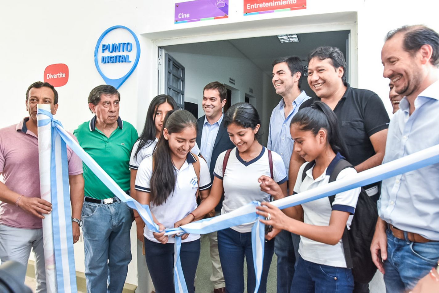 Luego, en el edificio municipal, las autoridades habilitaron el espacio Punto Digital, que cuenta con un gabinete de computación equipado con 16 computadoras con conexión a internet, sala de cine y dos consolas de juegos interactivos.