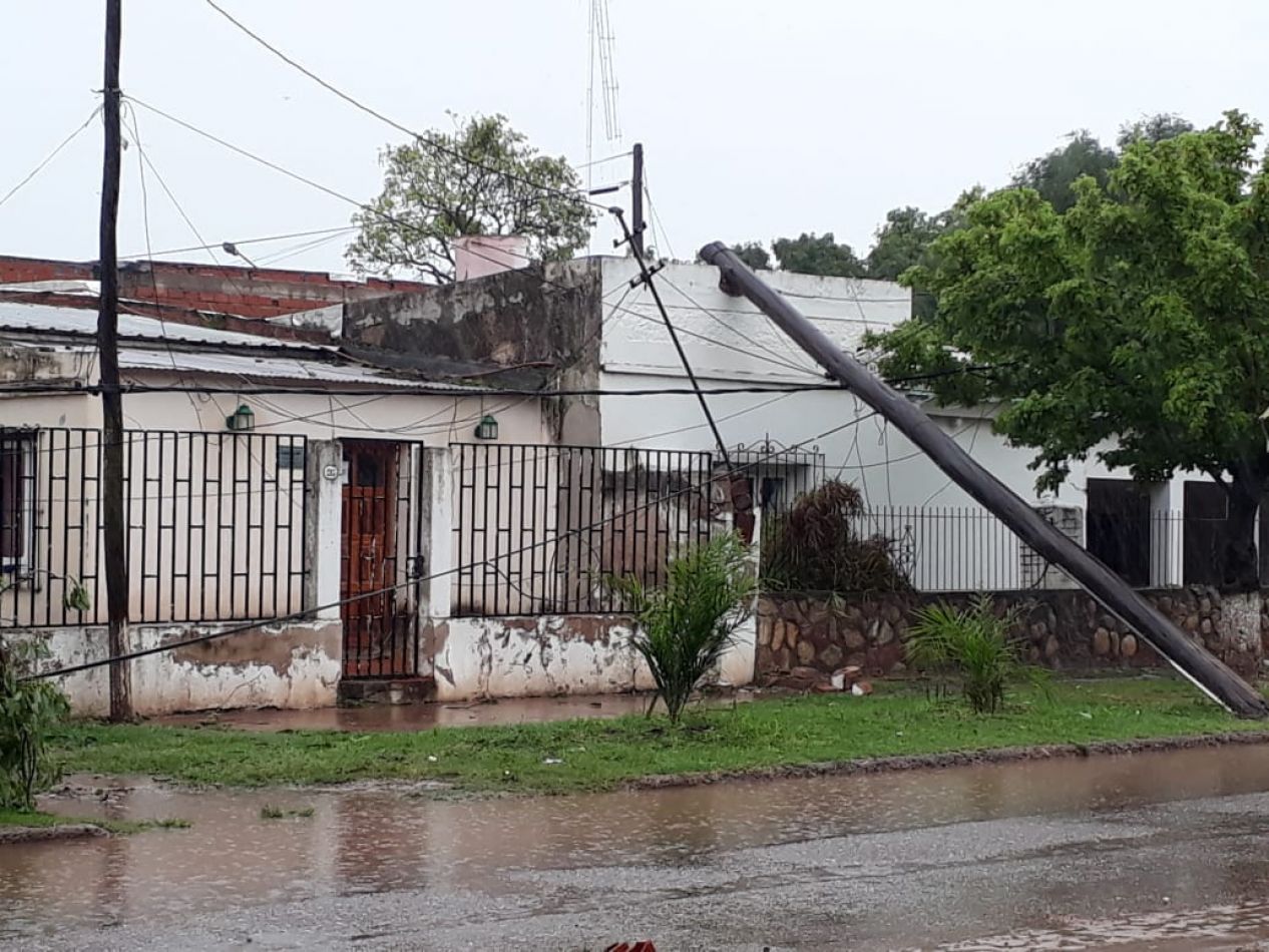 El Comité de crisis constató voladura de techos; en varios barrios ingresó de agua; en particular en el barrio 3 de abril , Caída de árboles y postes en todo el pueblo y Caída de cables de alta tensión es el motivo principal del corte de luz y un registro de lluvia de 112 ml .